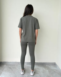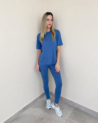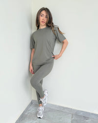 Relaxed oversized t-shirt paired with fitted leggings for a clean and effortless everyday look.