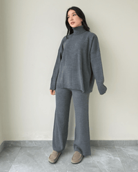 Fit: Cozy turtle neck + wide-leg warm pants