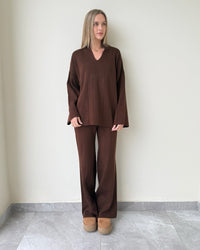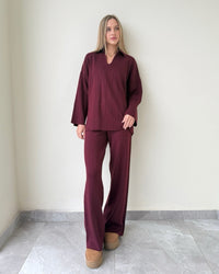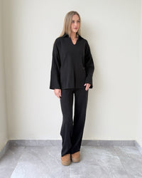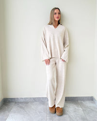Relaxed fit featuring cozy pants and a polo-style sweater for a chic everyday look.