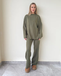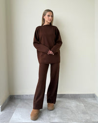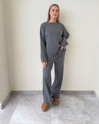 Comfortable relaxed fit with cozy pants and a soft sweater top.